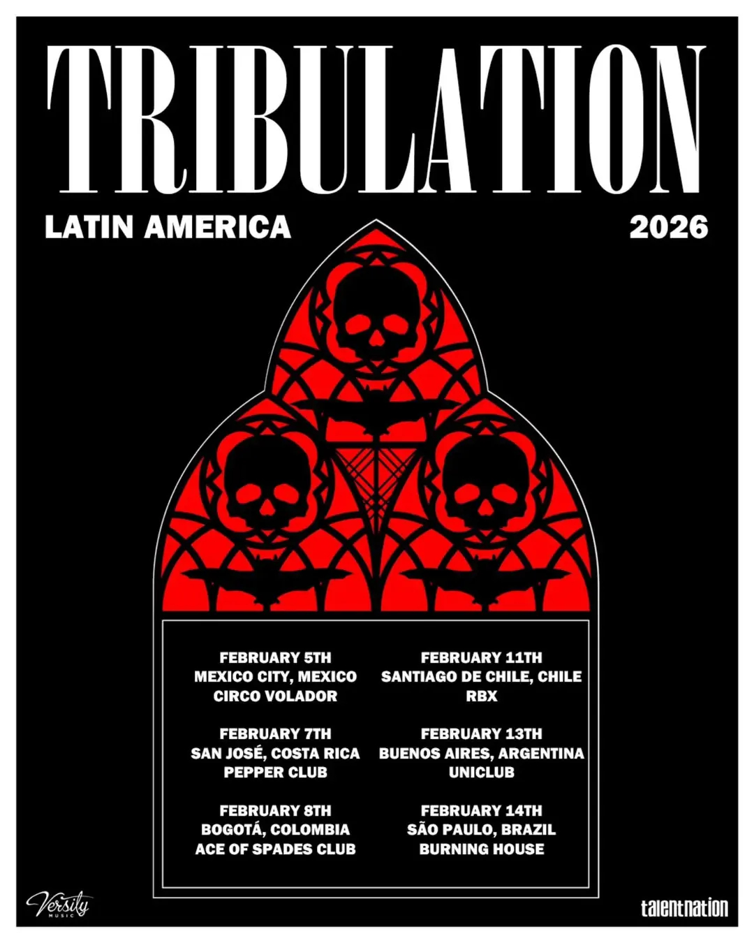 - Tribulation inicia su gira por Latinoamerica en Febrero: